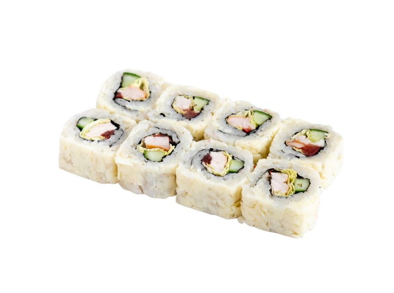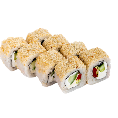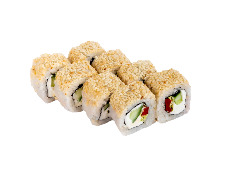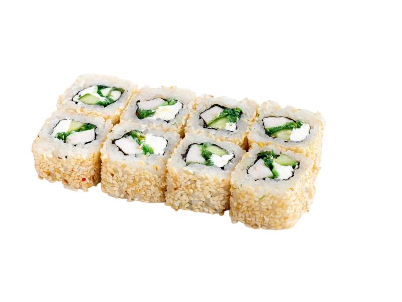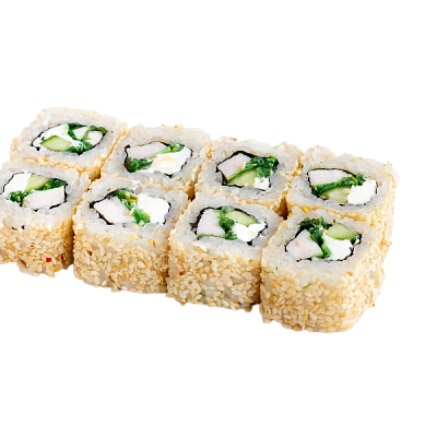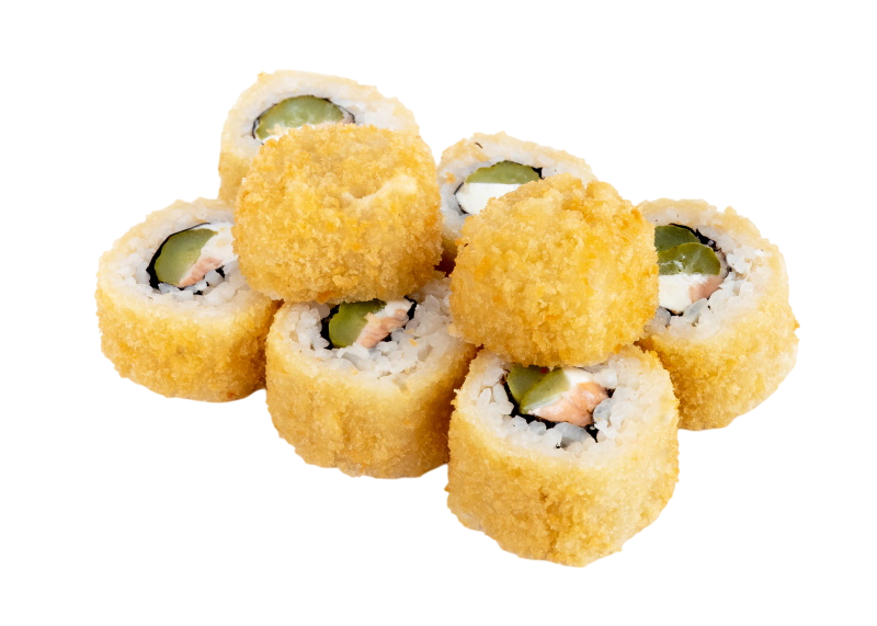 креветка жаренная в сухарях, огурец, сыр, кабаяки, рис, нори