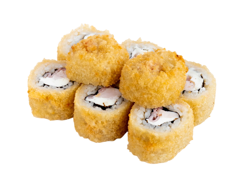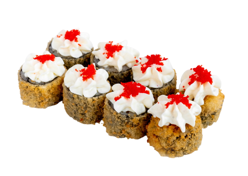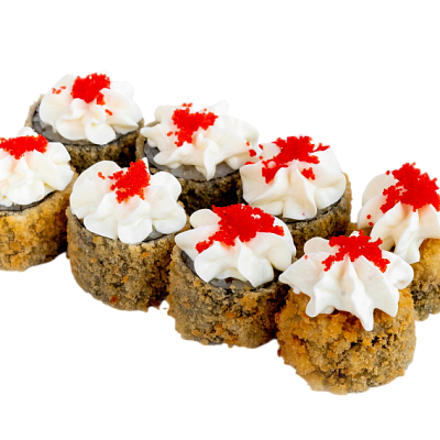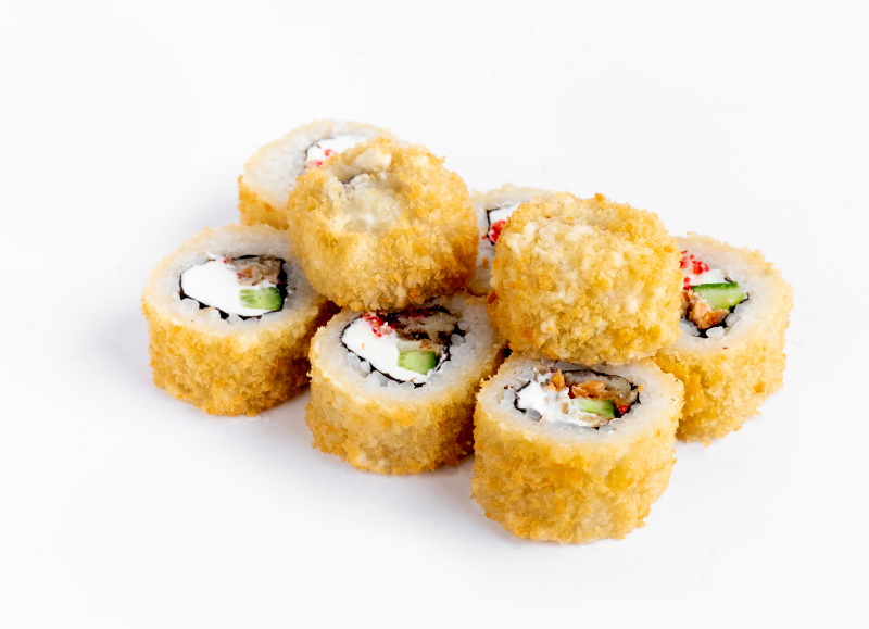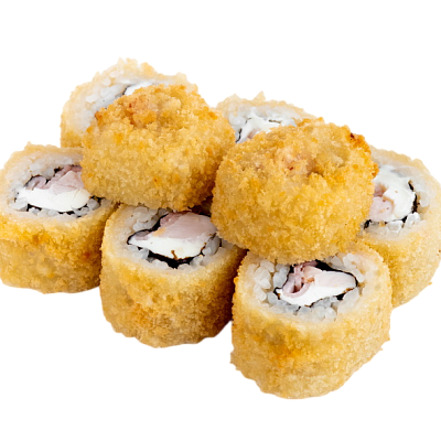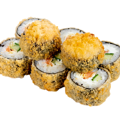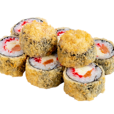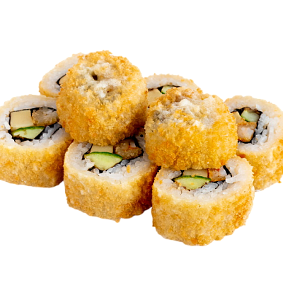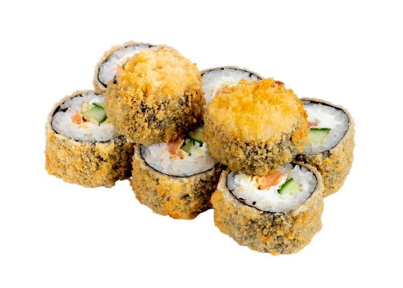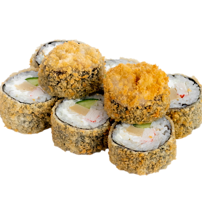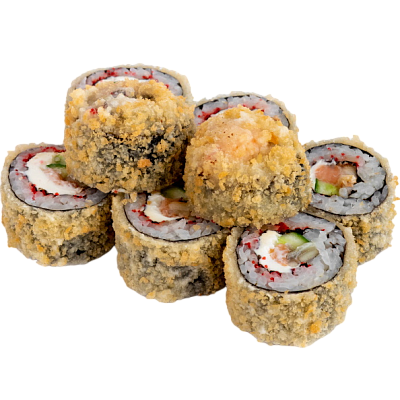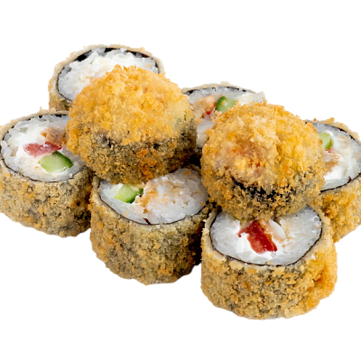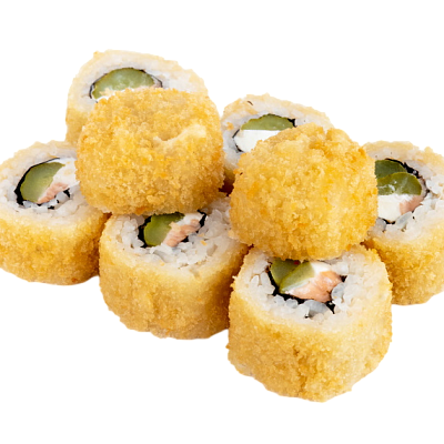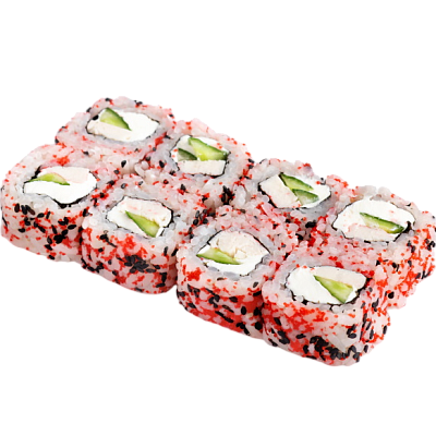 креветка жареная в сухарях, сыр, огурец, икра масаго, рис, нори