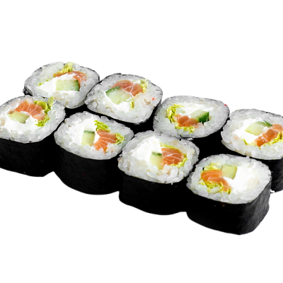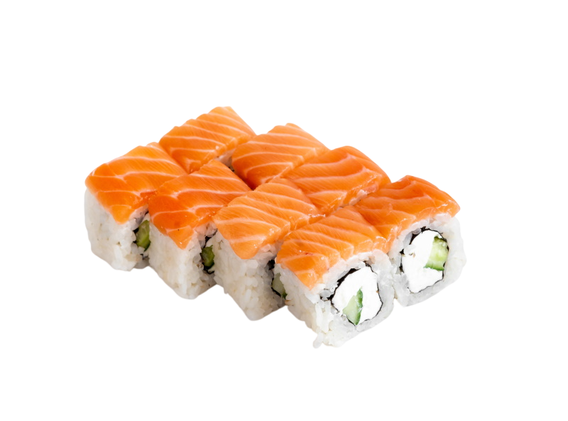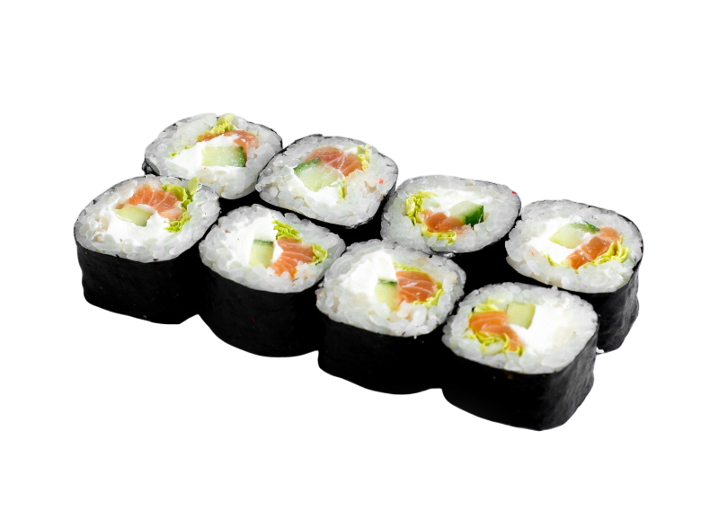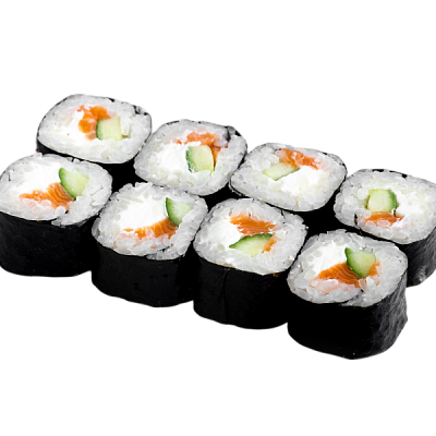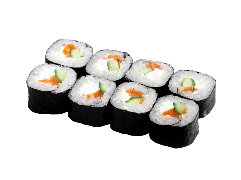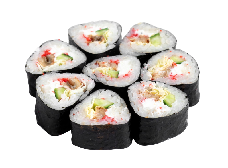 сёмга, угорь, огурец, икра масаго, сыр, рис, нори.