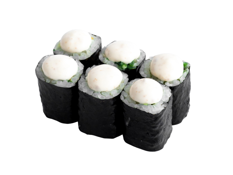 мидии жареные, мясо краба (имитация), сыр, огурец, рис, нори, икра масаго