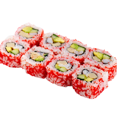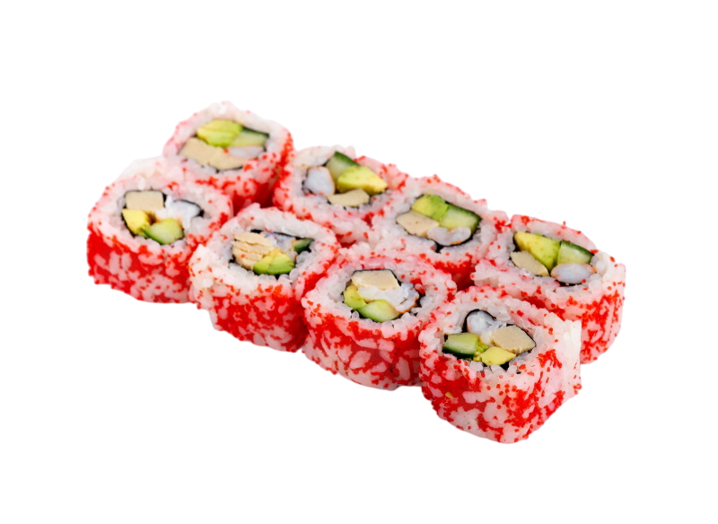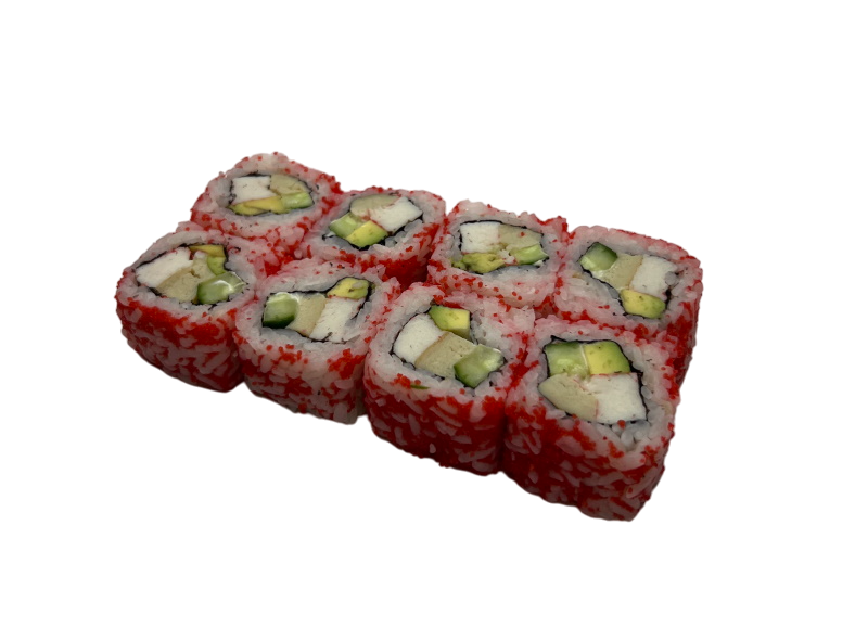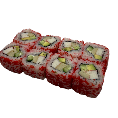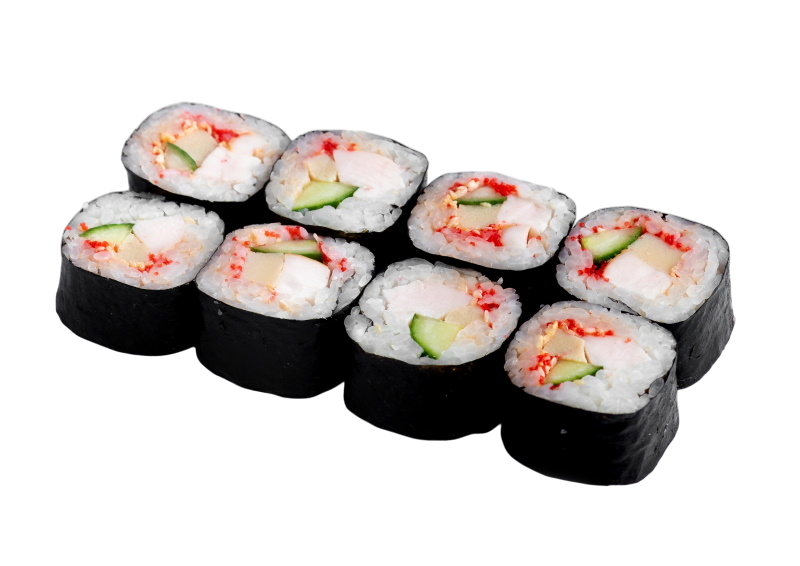 мясо краба (имитация), огурец, авокадо, омлет, масаго, майонез, рис, нори