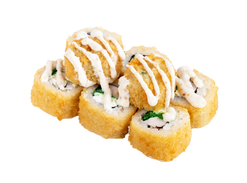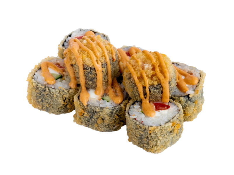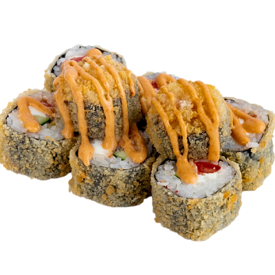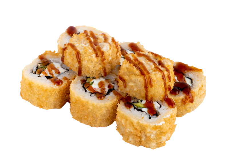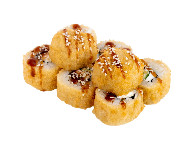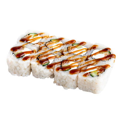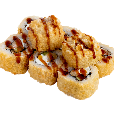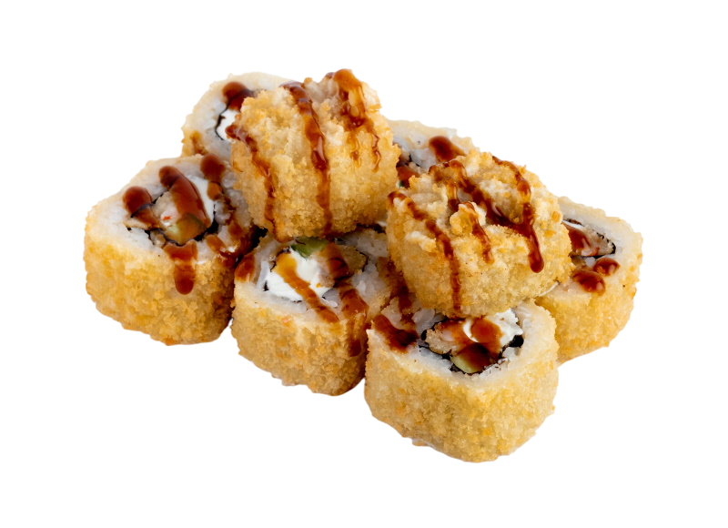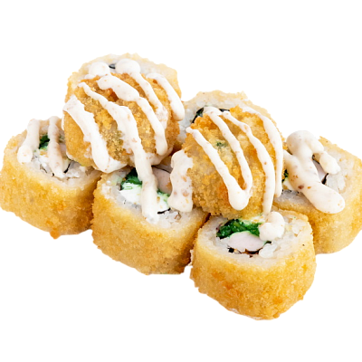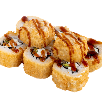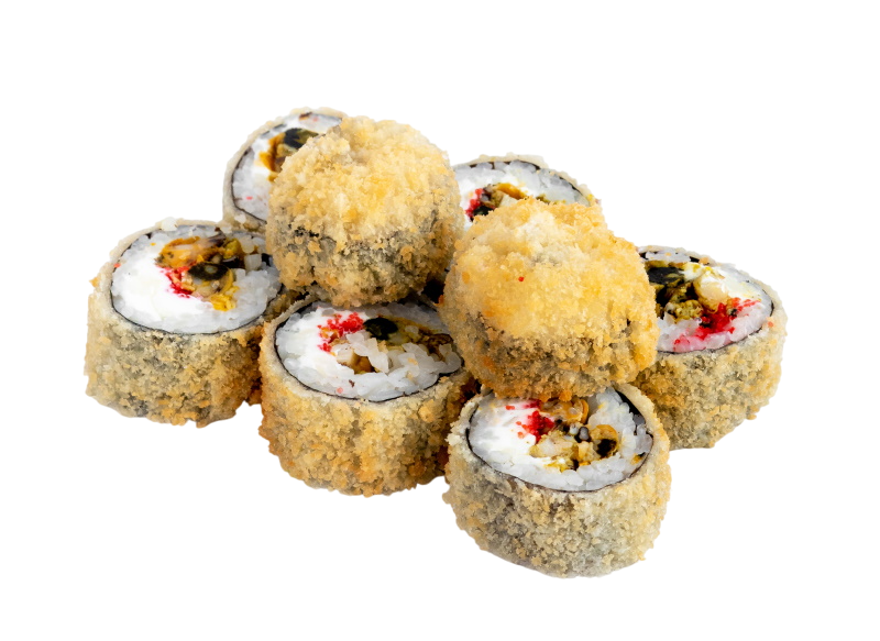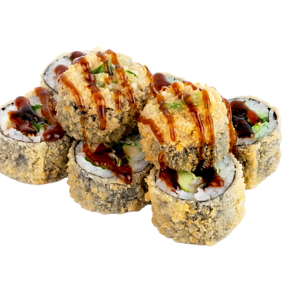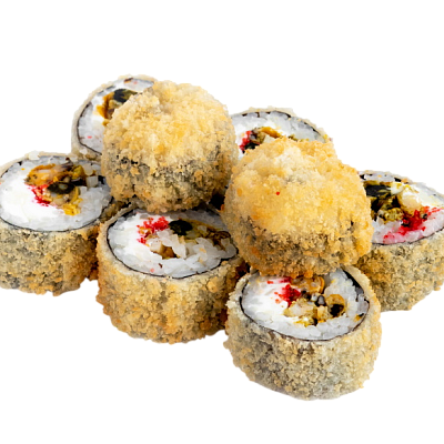 креветка жаренная в сухарях, сыр, огурец, соус кабаяки, рис, нори