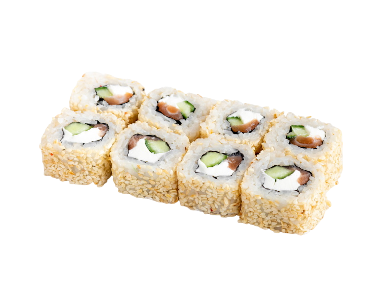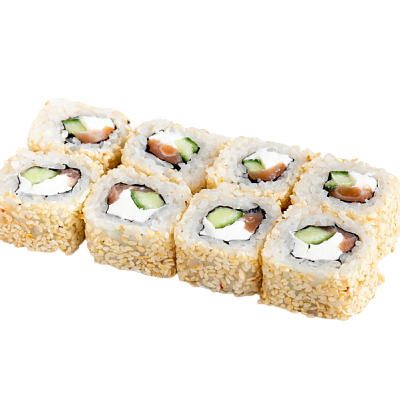 сёмга, сыр, авокадо, огурец, икра масаго, кунжут, нори, рис