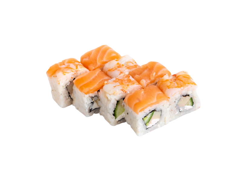 сёмга, тигровая креветка, сыр, огурец, японский омлет, масаго, рис, нори