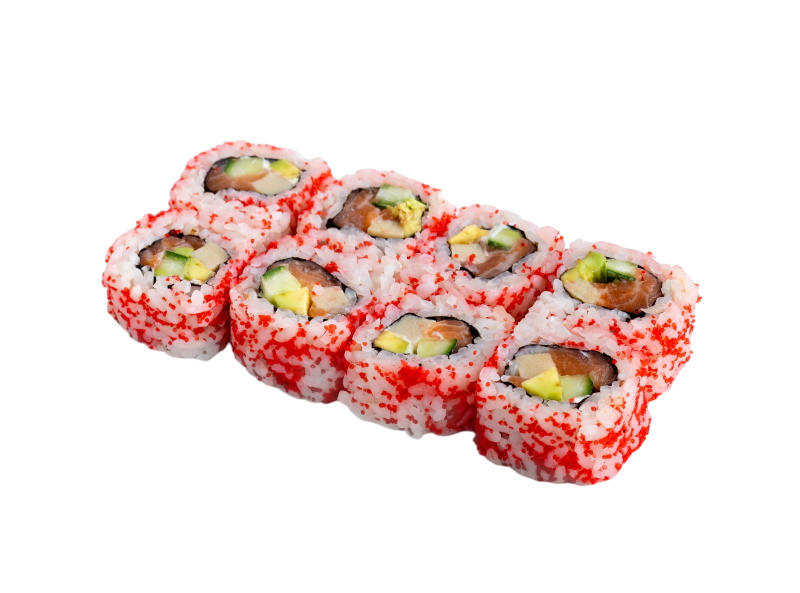 сёмга, огурец, авокадо, омлет, икра масаго, майонез, нори, рис