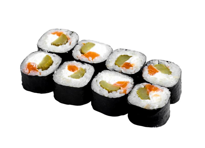 сёмга, два вида сыра, корнишон, рис, нори