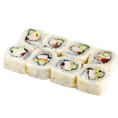 мясо краба (имитация), сыр, огурец, соус кабаяки, рис, нори