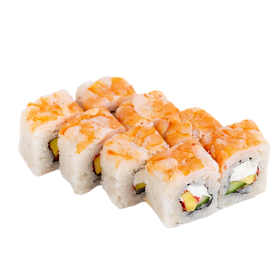 тигровая креветка, икра масаго, сыр, авокадо, огурец, рис, нори